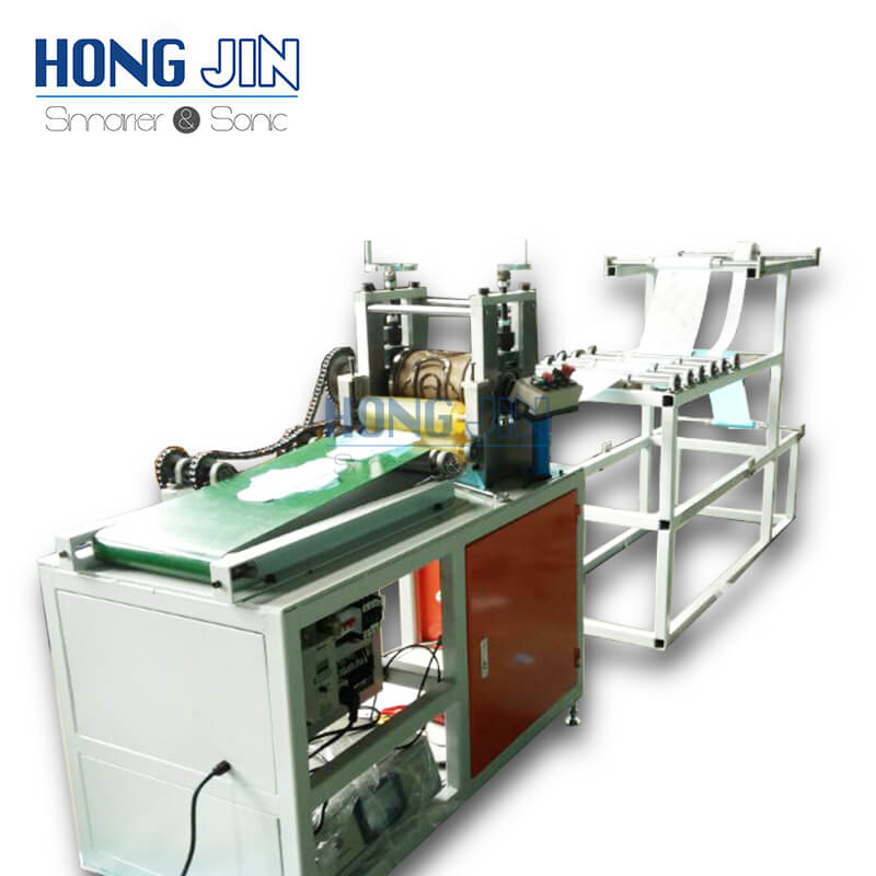This equipment is a production line specially developed by Shanghai Hongjin for the manufacture of sanitary napkins. The production line includes embossing, trimming, cutting, automatic connection of anion chip layer, automatic back glue, release paper attachment, automatic counting and other functions. The sanitary napkin production line has perfect functions, stable operation and high yield.